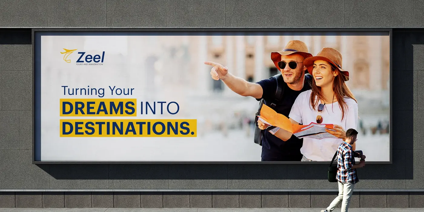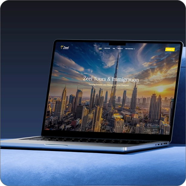 The design system for Zeel Tours & Immigration is built around clarity, trust, and global connectivity. It maintains a consistent visual language that reflects professionalism while conveying the excitement of travel and international opportunities.