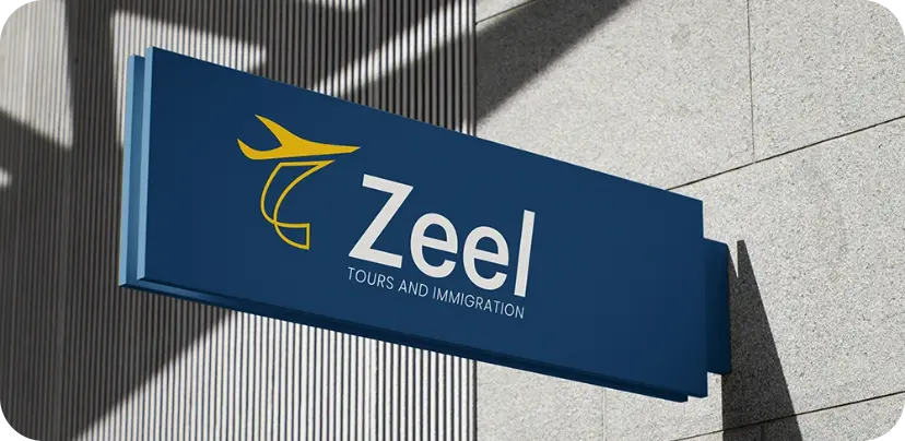 The structured yet fluid typography reflects trust, professionalism, and clarity, while the minimal design ensures versatility across digital and print applications. Overall, the logo communicates Zeel’s commitment to reliable guidance and smooth international travel experiences.