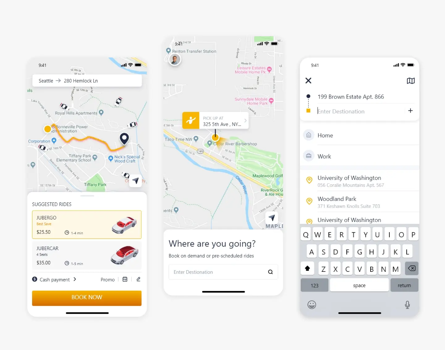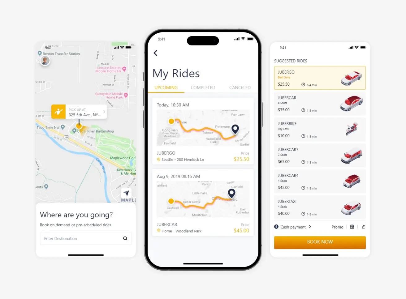 Built with a user-first approach, the app focuses on speed, safety, and convenience. Smart route mapping, fare estimation, and driver details enhance trust, while minimal design elements reduce cognitive load. The result is a seamless travel experience tailored for modern, on-the-go users.