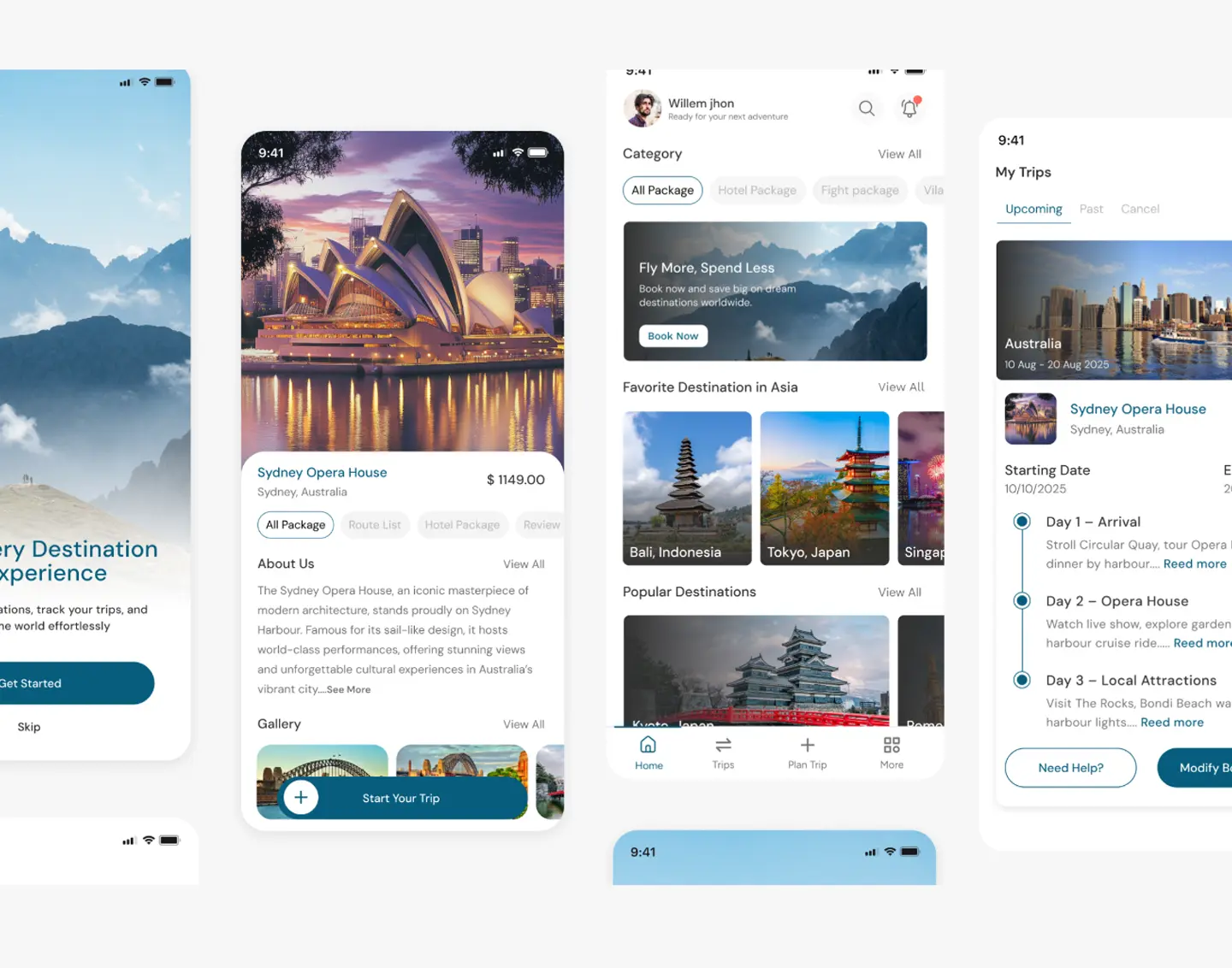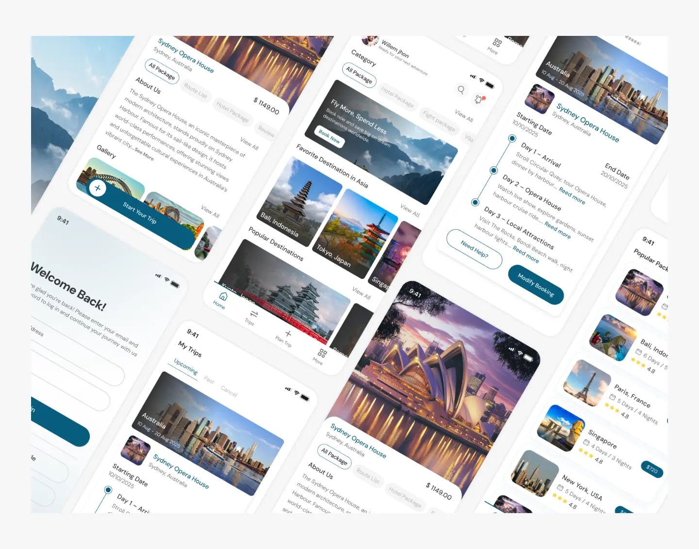 This project focuses on designing a modern travel booking mobile application that helps users discover destinations, explore curated travel packages, and manage trips seamlessly. The app provides a visually immersive experience while simplifying complex travel planning tasks such as itinerary viewing, booking modification, and trip tracking.