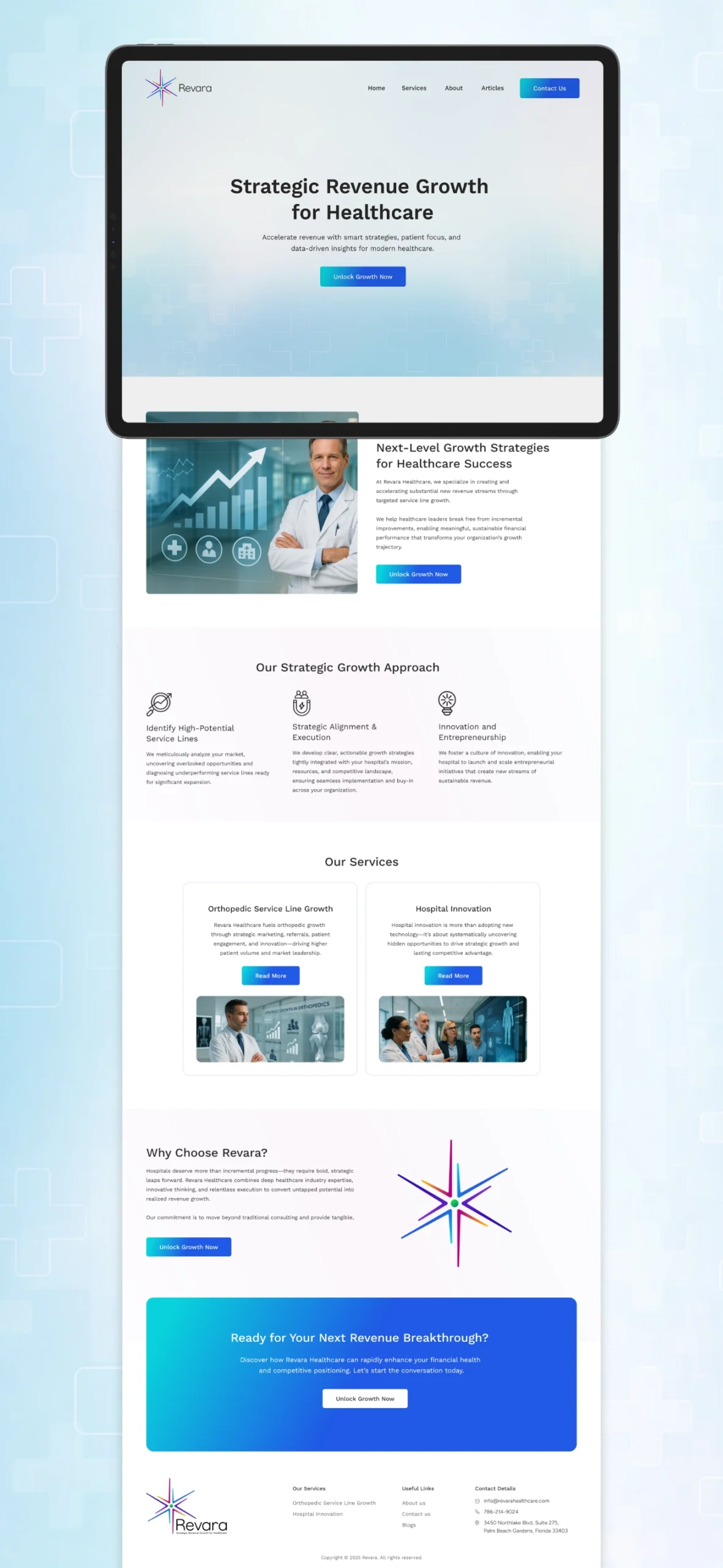 • Designing a clean experience that supports long-form clarity and CTAs