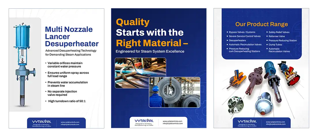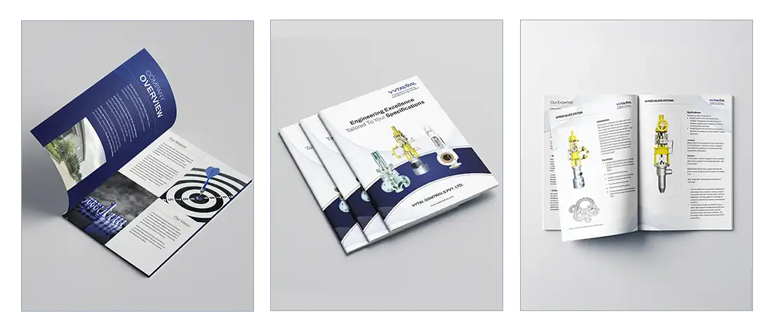 This included clear, professional layouts designed to support brochure design for manufacturing company needs—ensuring Vytal Controls presents itself with confidence in all customer-facing interactions.